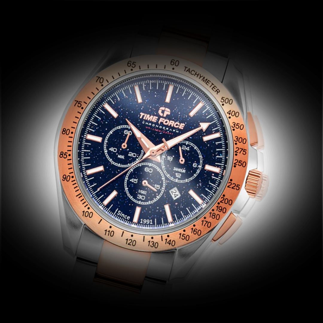 At Time Force, we offer a variety of watches, including sports, elegant, and special edition styles. Our collections are designed for different personalities, from those who seek an ultra-thin and subtle watch to those who prefer a more robust and sporty design. We are known for our automatic models, limited editions, and collections tailored for those with a bold and sporty style.