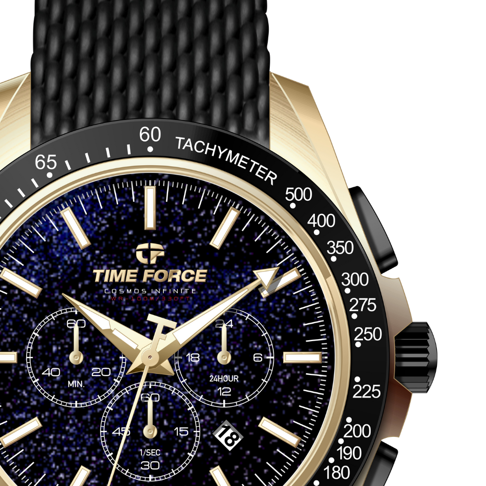The Cosmos Infinite’s tachymeter allows you to measure speed with precision, making it a functional and sophisticated tool for sports or professional activities. Monitor every detail of your performance with an accessory that balances technology and style.