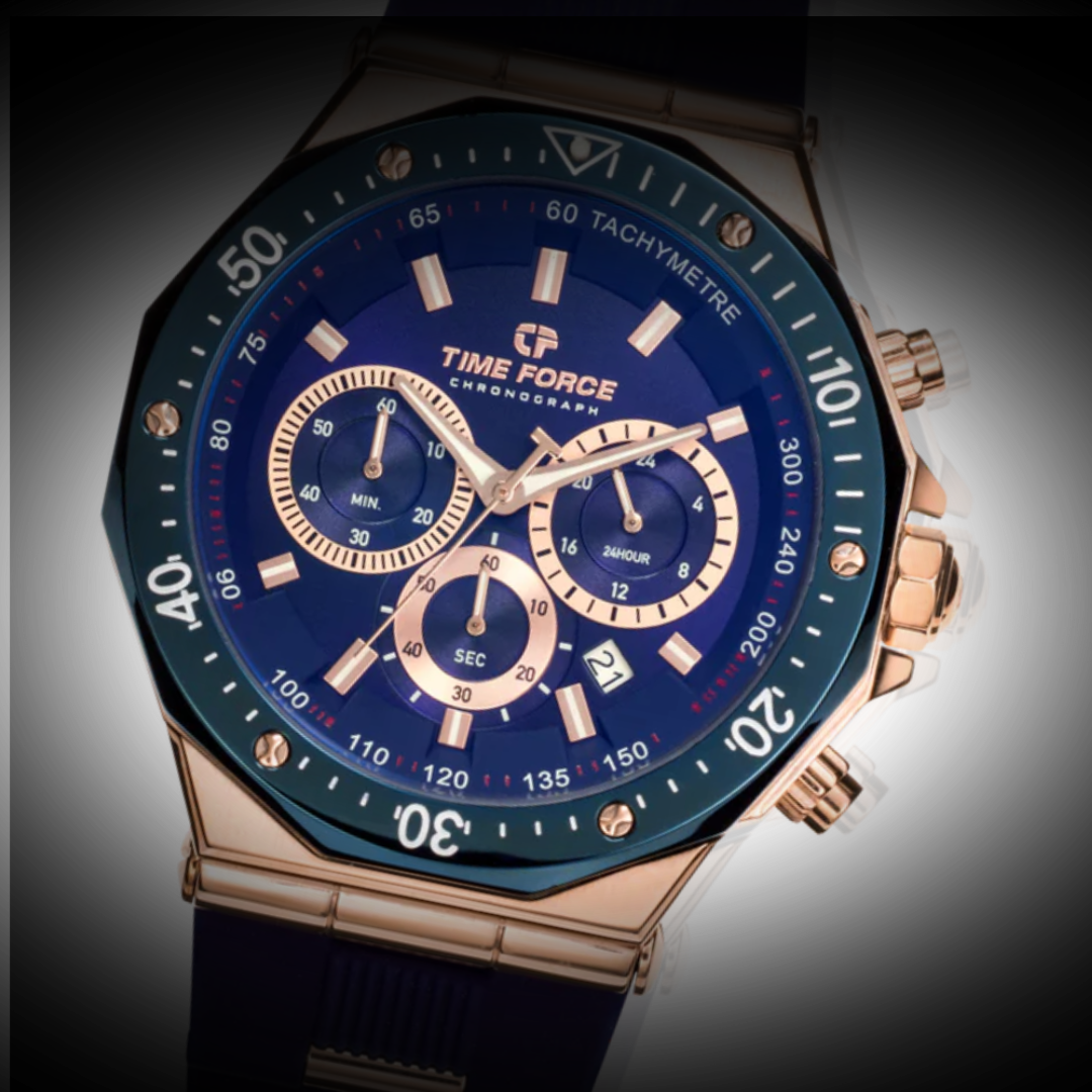 At Time Force, we offer a variety of watches, including sports, elegant, and special edition styles. Our collections are designed for different personalities, from those who seek an ultra-thin and subtle watch to those who prefer a more robust and sporty design. We are known for our automatic models, limited editions, and collections tailored for those with a bold and sporty style.
