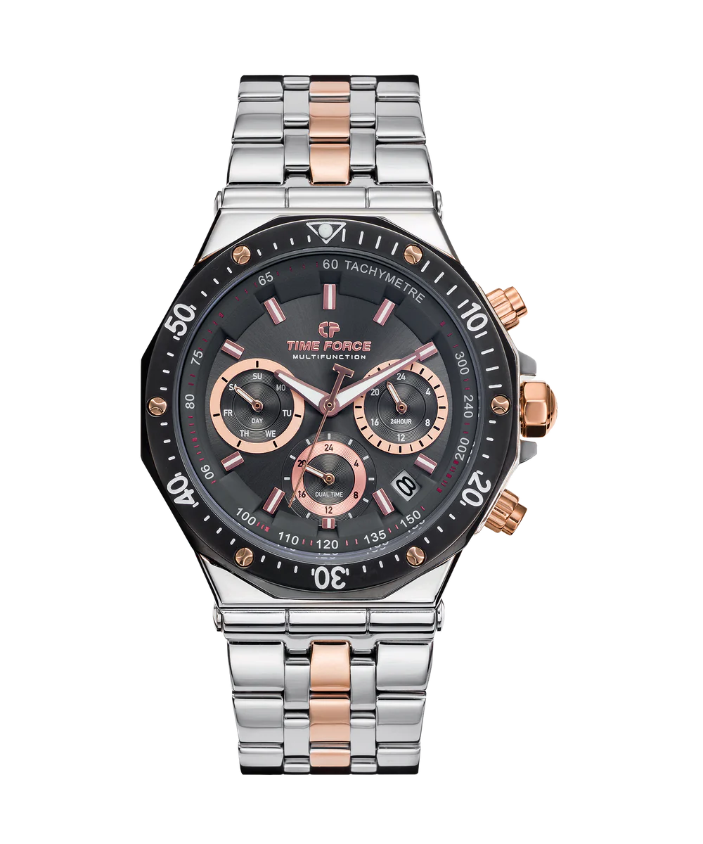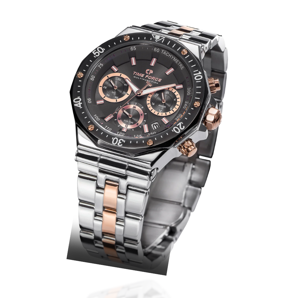 At Time Force, we offer a variety of watches, including sports, elegant, and special edition styles. Our collections are designed for different personalities, from those who seek an ultra-thin and subtle watch to those who prefer a more robust and sporty design. We are known for our automatic models, limited editions, and collections tailored for those with a bold and sporty style.