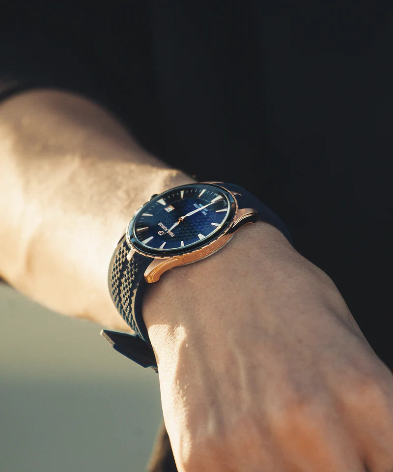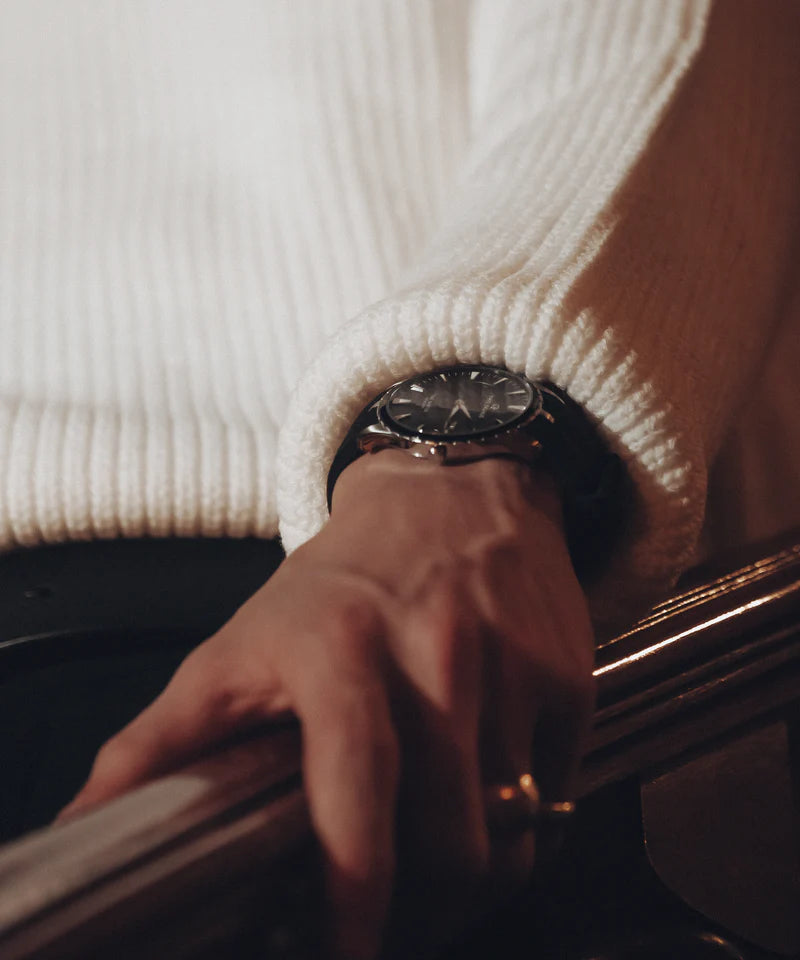 With a 41mm case and a 22mm strap, the Time Master Ultra Slim offers the perfect balance between presence and comfort.