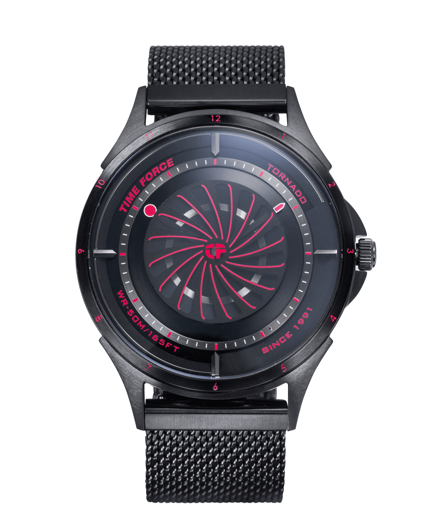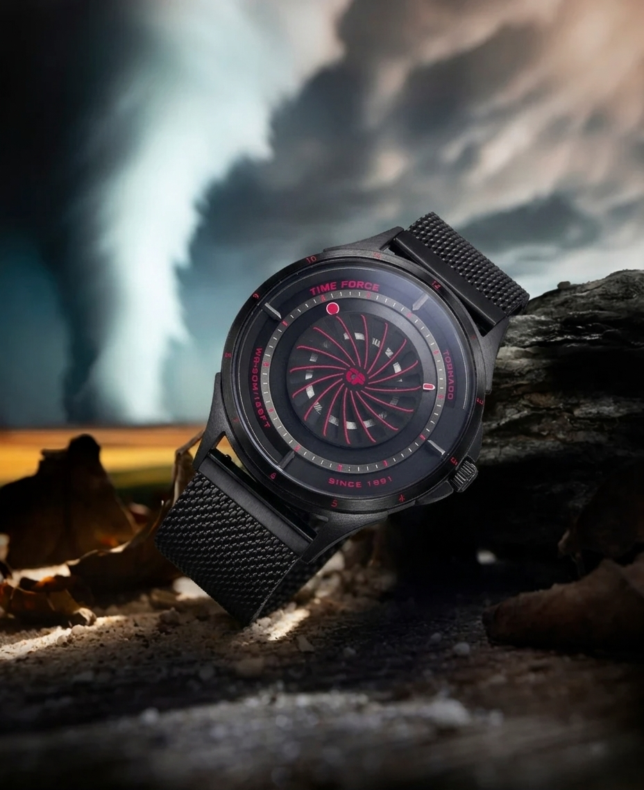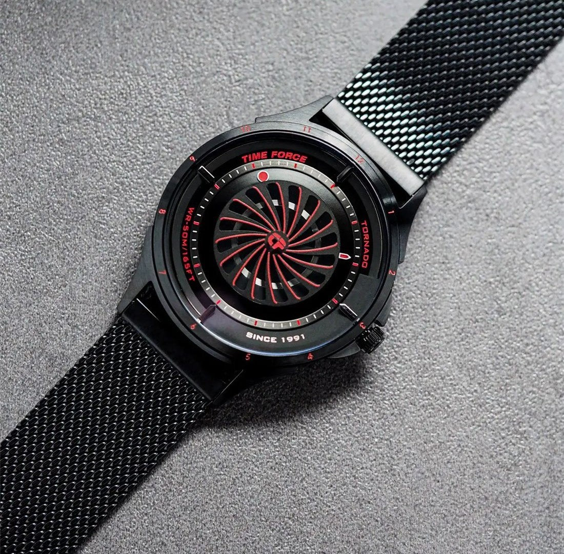 This bold and modern watch, featuring an elegant Milanese mesh bracelet, stands as a symbol of our "Ultimate Concept Watches" philosophy. Its design is a masterpiece that challenges the conventional boundaries of watchmaking. Additionally, the TORNADO comes with an extra strap, offering versatility and the ability to customize your style effortlessly.