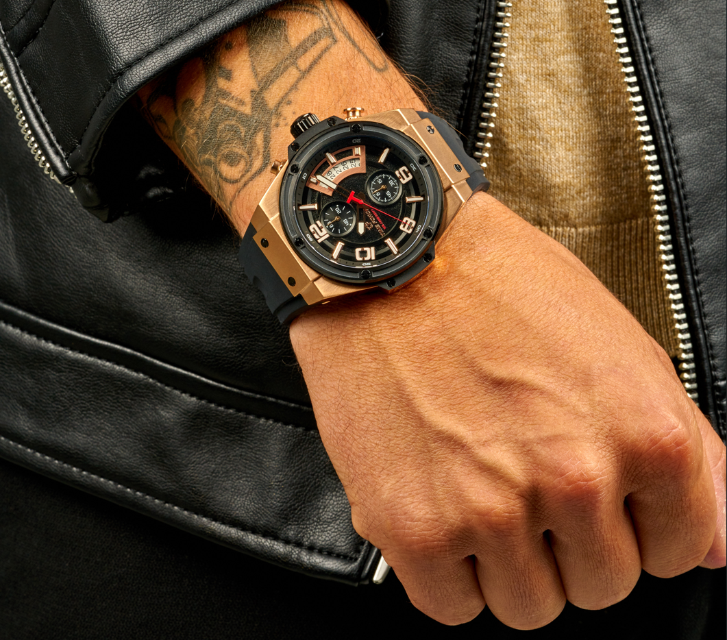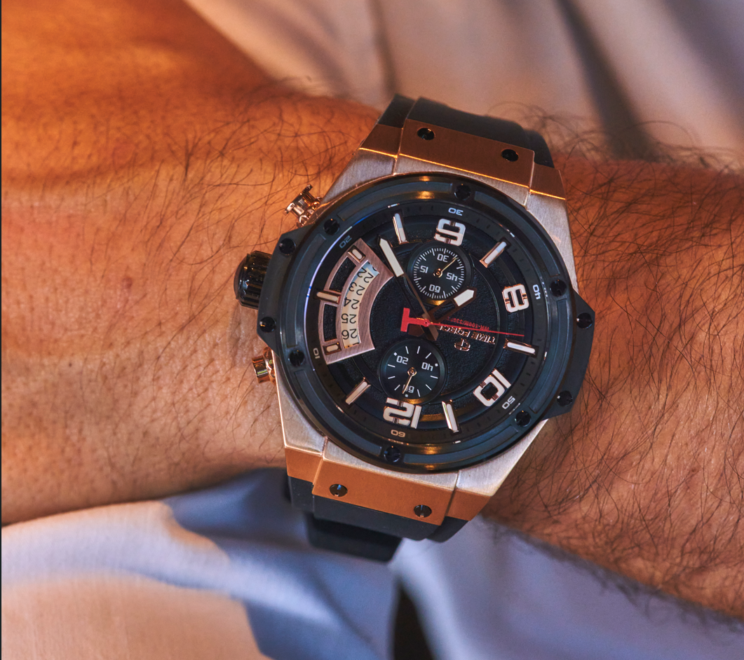 With a 46 mm case and a 28 mm strap, the Vortex delivers a powerful look and a surprisingly comfortable wear.