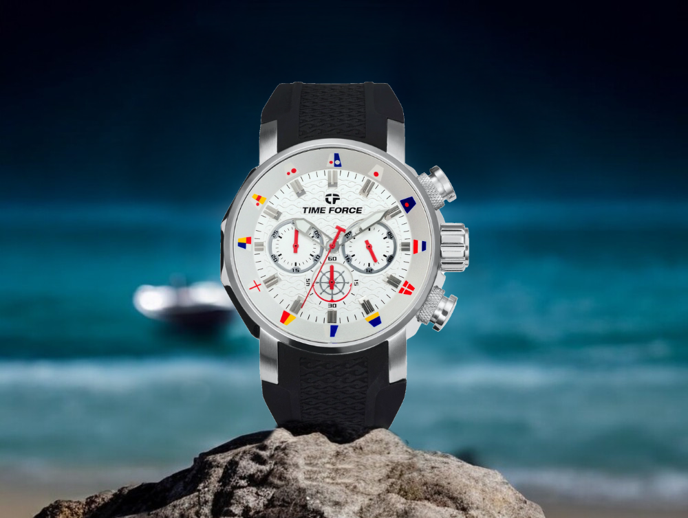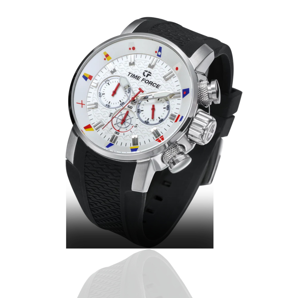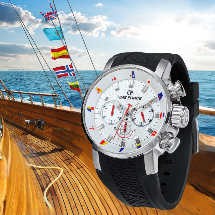 The Sailing's silicone strap offers lightweight durability, resistance, and a perfect fit, making it ideal for active lifestyles and aquatic environments. This watch combines practicality with a modern design, making it perfect for both sports and casual wear. Additionally, its chronograph adds advanced functionality, allowing you to measure time intervals with precision and style, making it the ideal choice for those seeking a blend of elegance and performance on every nautical journey.