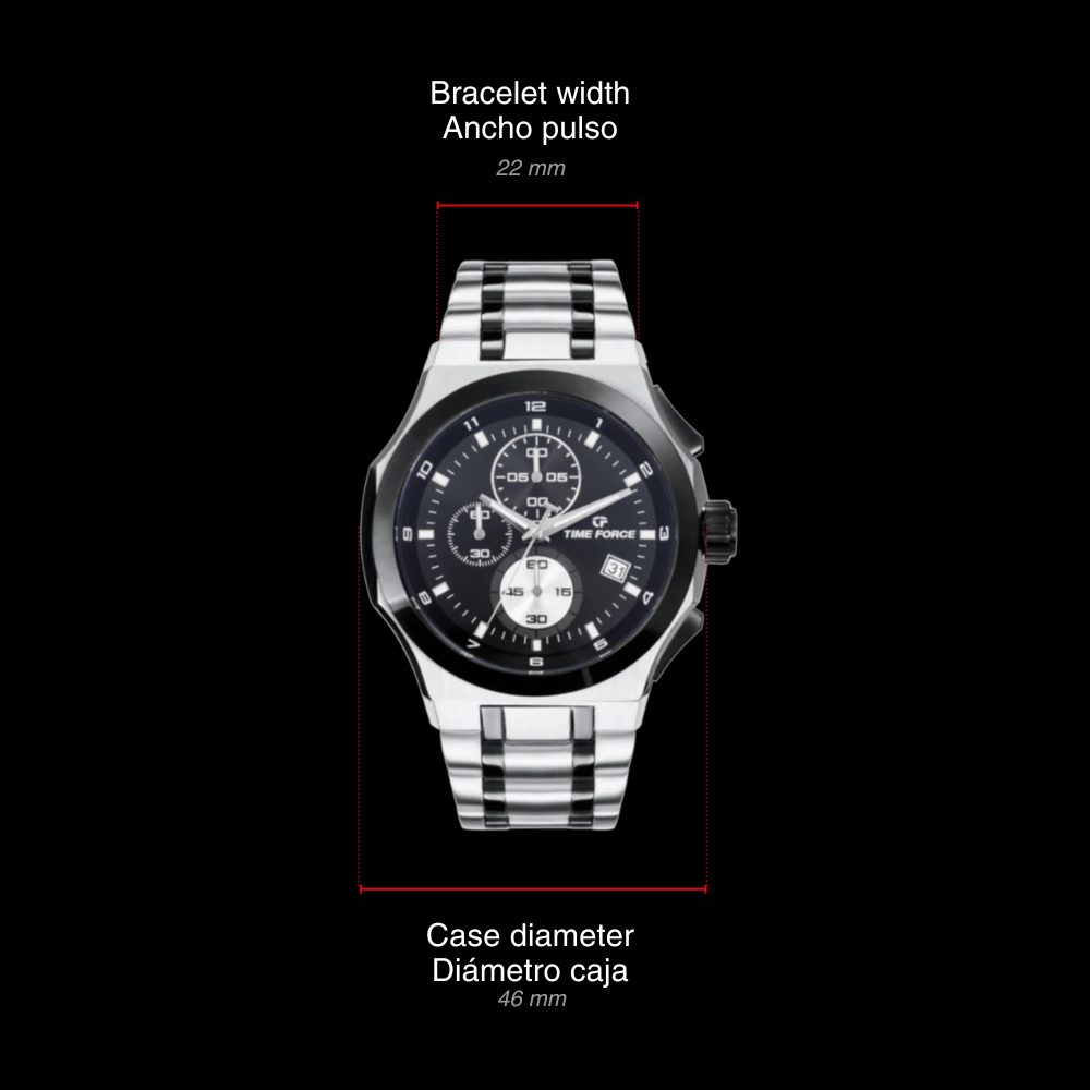 Although it is a classic piece, we have decided to give it a differentiating touch with a chronograph that combines perfectly with the line of this design, making it functional for adventure scenarios, with soft pushers that continue to maintain that unique Time Force style.