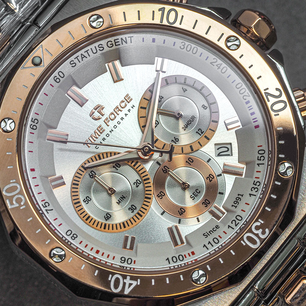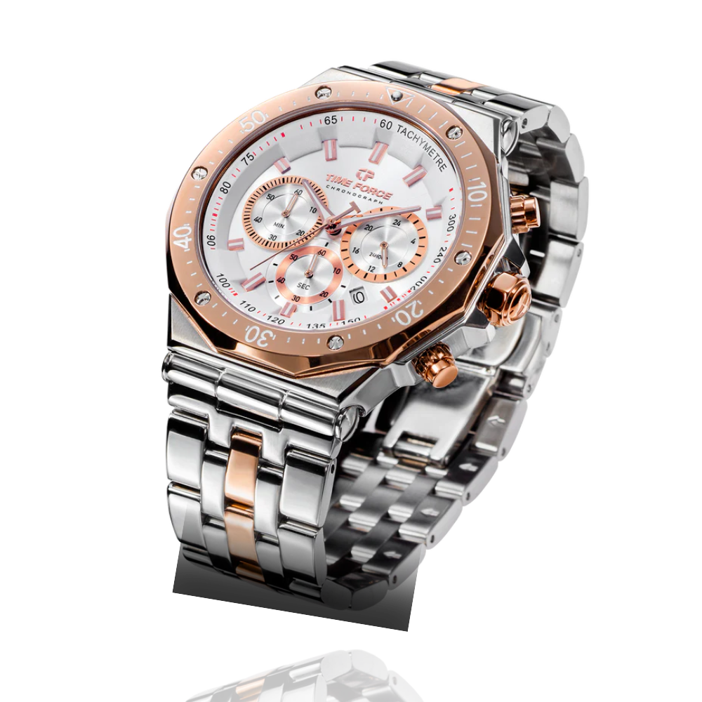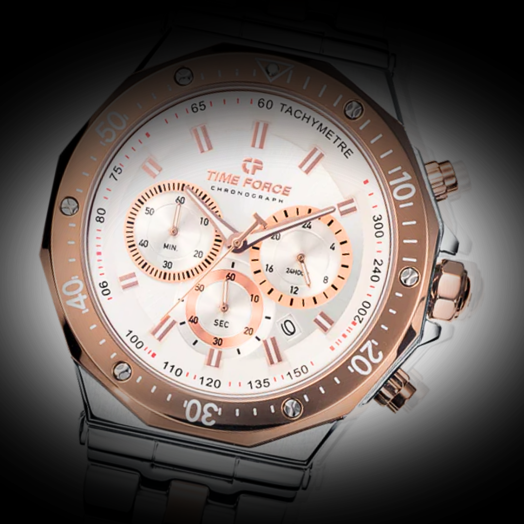 At Time Force, we offer a variety of watches, including sports, elegant, and special edition styles. Our collections are designed for different personalities, from those who seek an ultra-thin and subtle watch to those who prefer a more robust and sporty design. We are known for our automatic models, limited editions, and collections tailored for those with a bold and sporty style.