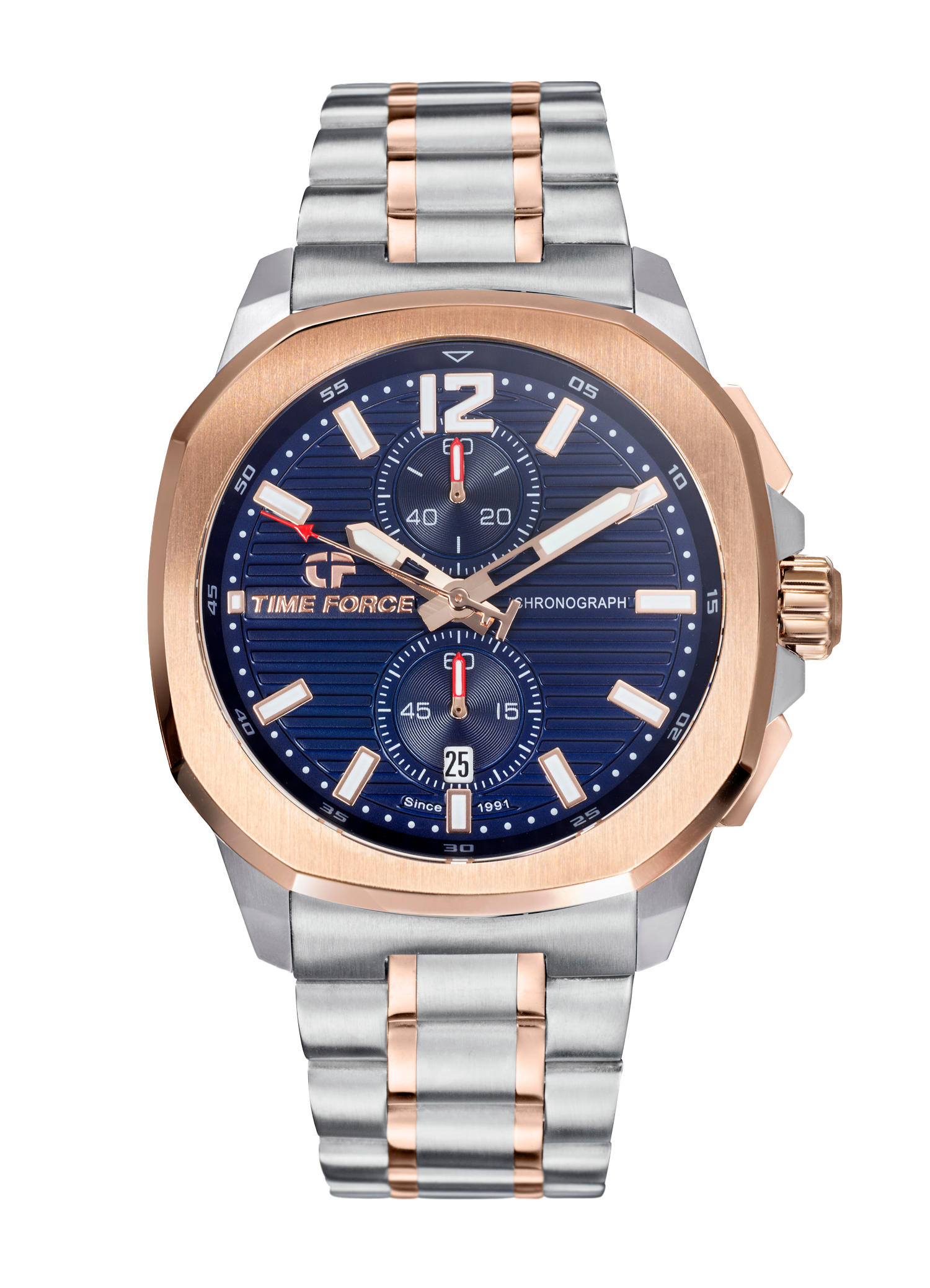At Time Force, we offer a variety of watches, including sports, elegant, and special edition styles. Our collections are designed for different personalities, from those who seek an ultra-thin and subtle watch to those who prefer a more robust and sporty design. We are known for our automatic models, limited editions, and collections tailored for those with a bold and sporty style.
