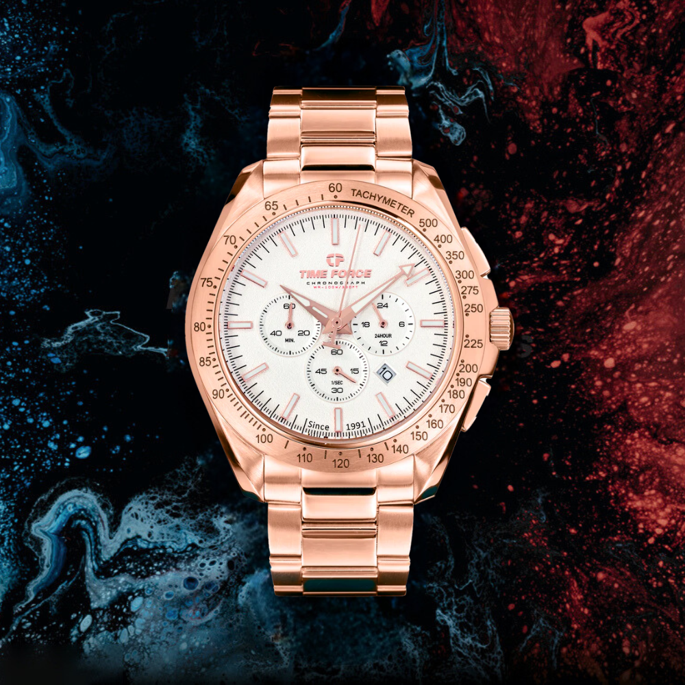 At Time Force, we offer a variety of watches, including sports, elegant, and special edition styles. Our collections are designed for different personalities, from those who seek an ultra-thin and subtle watch to those who prefer a more robust and sporty design. We are known for our automatic models, limited editions, and collections tailored for those with a bold and sporty style.