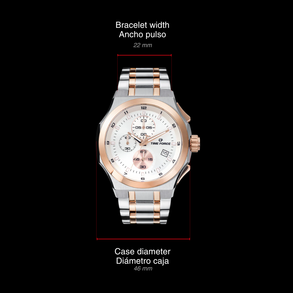Although it is a classic piece, we have decided to give it a differentiating touch with a chronograph that combines perfectly with the line of this design, making it functional for adventure scenarios, with soft pushers that continue to maintain that unique Time Force style.