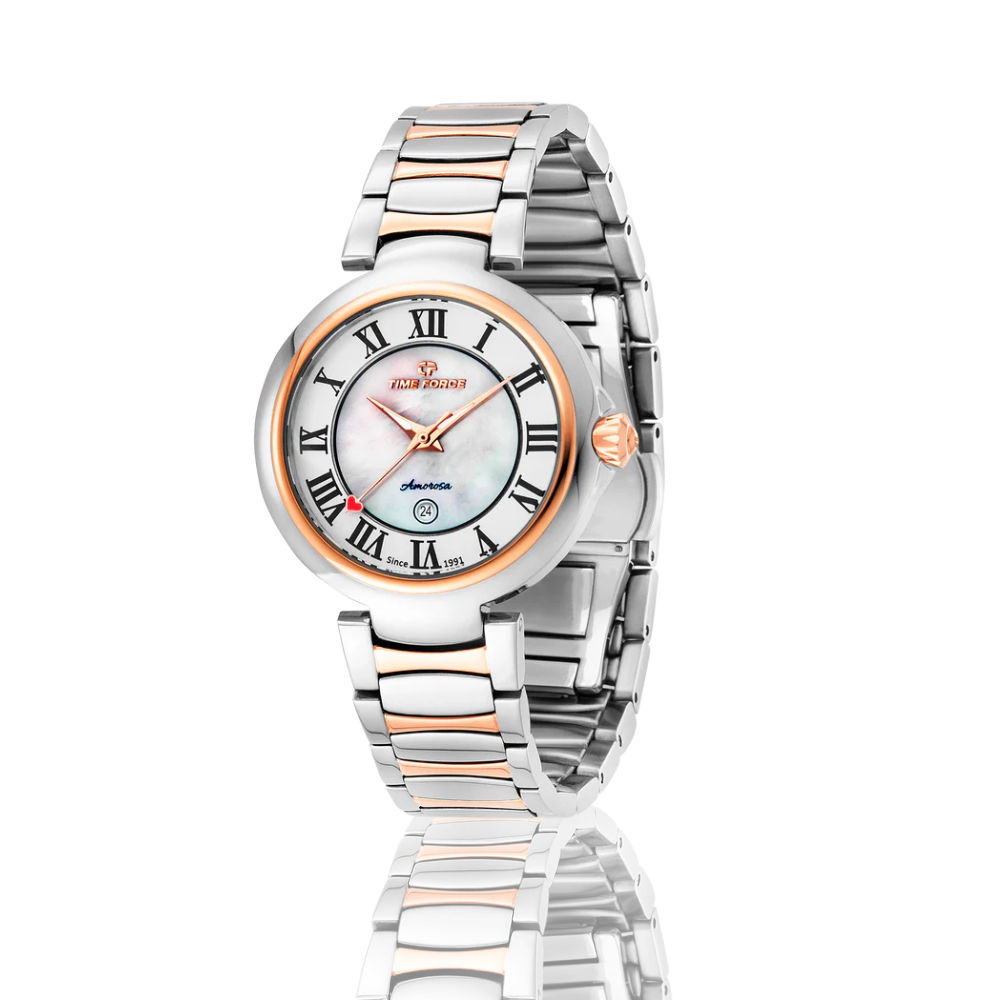 The mother-of-pearl dial adds a unique and sophisticated shine, highlighting the elegant design of the Amorosa. A touch of luxury that makes this watch a special and distinctive accessory.