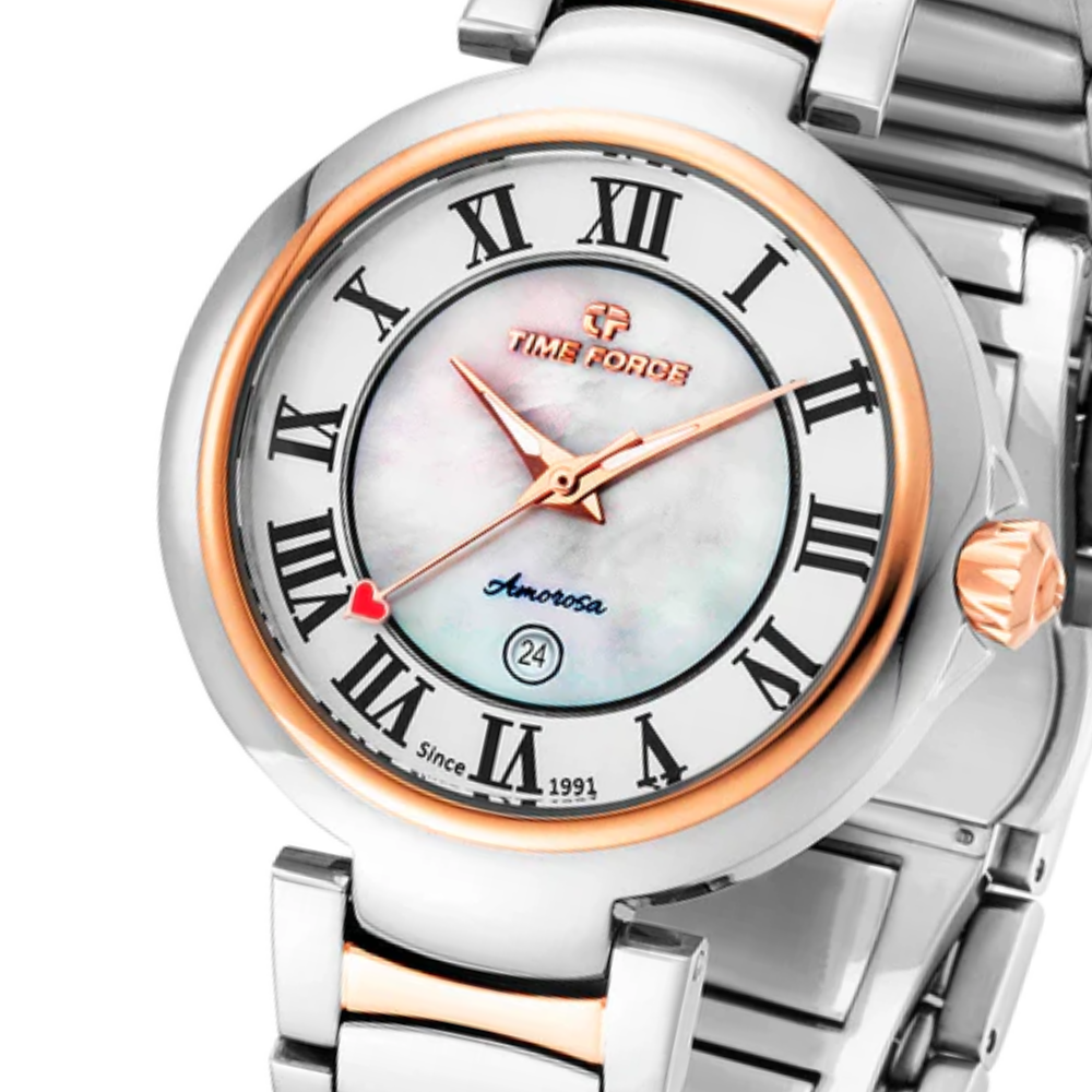 The Amorosa watch is crafted from 316L stainless steel, a durable material that retains its shine and sophistication over time. Additionally, it features a PVD steel treatment, enhancing its durability and appearance. This model combines strength and elegance, designed to last and stand out on any occasion.