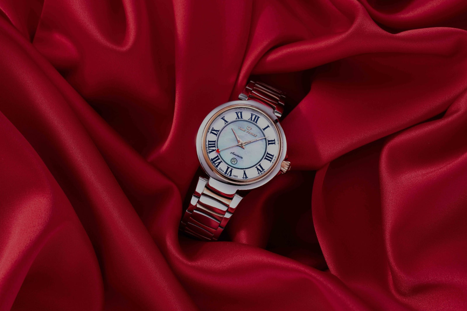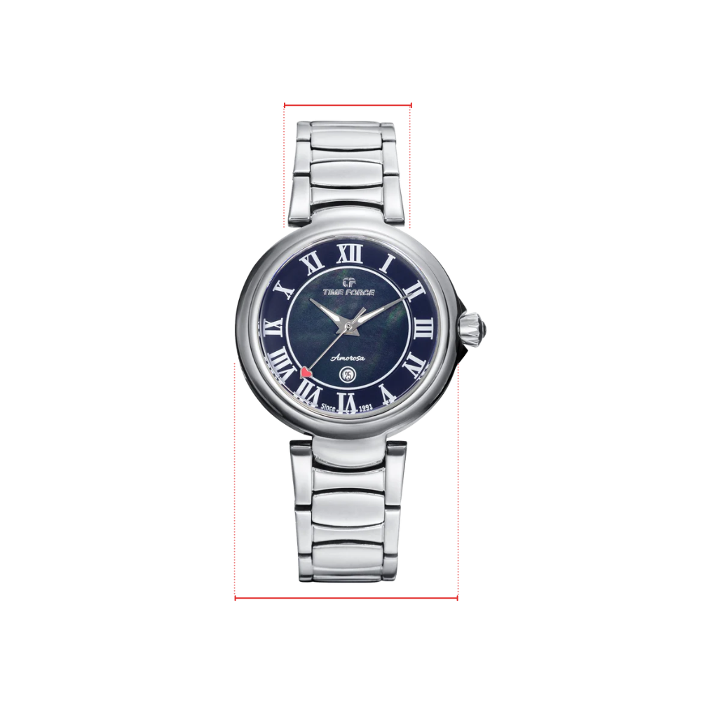 The stainless steel bracelet of the Amorosa watch combines elegance and resilience. With its polished finish and flawless design, it’s a style statement of confidence and sophistication. Perfect for those who value a solid, distinguished watch, it ensures lasting shine and timeless appeal.