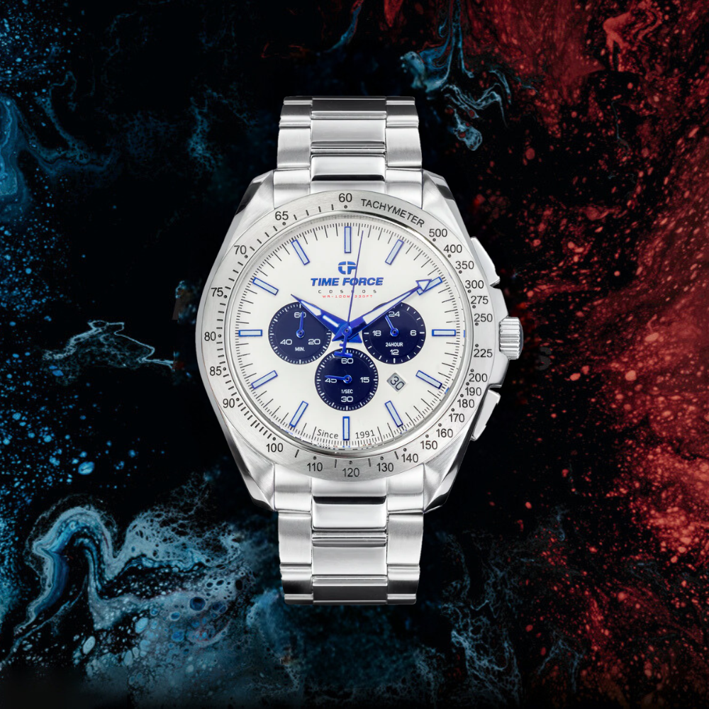 The Cosmos with a stainless steel strap by Time Force is designed for those who appreciate classic elegance combined with unmatched durability.