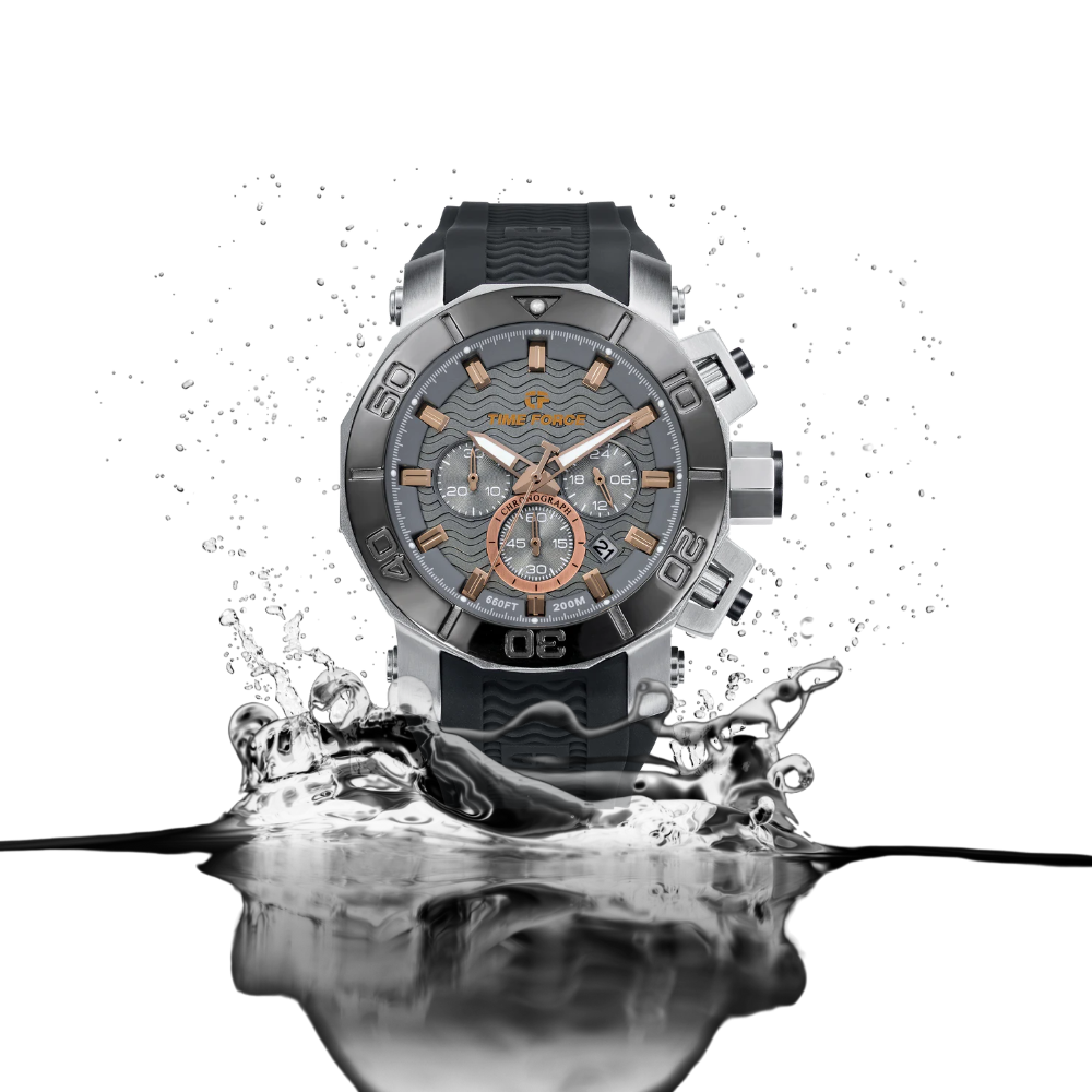 Yes, several of our watches are designed to be water-resistant, offering up to 20 ATM resistance. This includes features like screw-down crowns for added protection in aquatic conditions. The minimum water resistance for Time Force watches is 5 ATM.