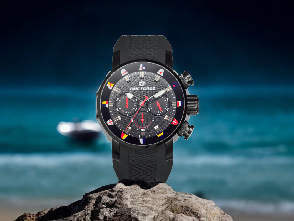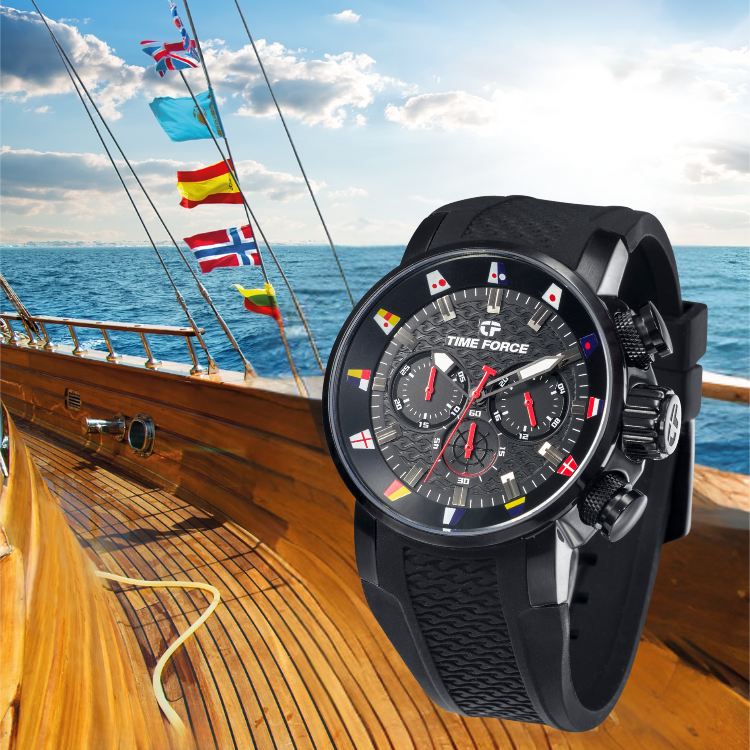 The Sailing's silicone strap offers lightweight durability, resistance, and a perfect fit, making it ideal for active lifestyles and aquatic environments. This watch combines practicality with a modern design, making it perfect for both sports and casual wear. Additionally, its chronograph adds advanced functionality, allowing you to measure time intervals with precision and style, making it the ideal choice for those seeking a blend of elegance and performance on every nautical journey.