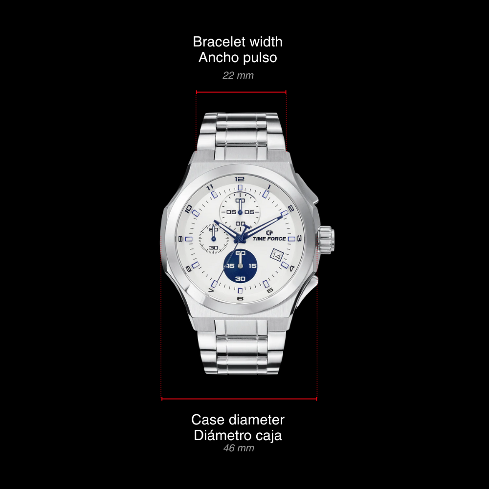 Although it is a classic piece, we have decided to give it a differentiating touch with a chronograph that combines perfectly with the line of this design, making it functional for adventure scenarios, with soft pushers that continue to maintain that unique Time Force style.