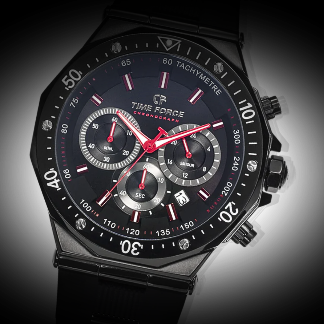 At Time Force, we offer a variety of watches, including sports, elegant, and special edition styles. Our collections are designed for different personalities, from those who seek an ultra-thin and subtle watch to those who prefer a more robust and sporty design. We are known for our automatic models, limited editions, and collections tailored for those with a bold and sporty style.